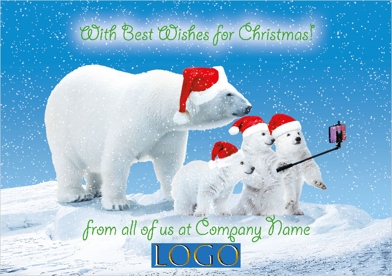 Polar Portrait are Gloss finished and suitable for corporate, business, company or personal use. 625-609 is a perfect choice for small to large companies. Our Polar Portrait Christmas cards are printed onto a premium thickness board, acquired only from sustainable sources and produced in the UK. Your inside personalisation is peronalised directly onto the card. Polar Portrait are sized at 210x148mm. Front Personalised Chritmas Card